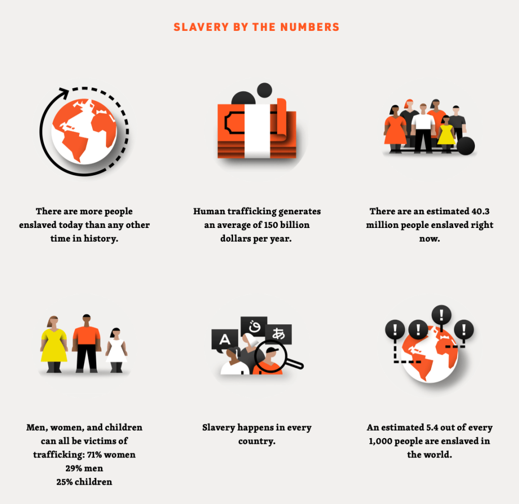 Also: human trafficking isn’t always about sex. That may be the #1 form in the US, but around the world, forced labor is a major problem.
